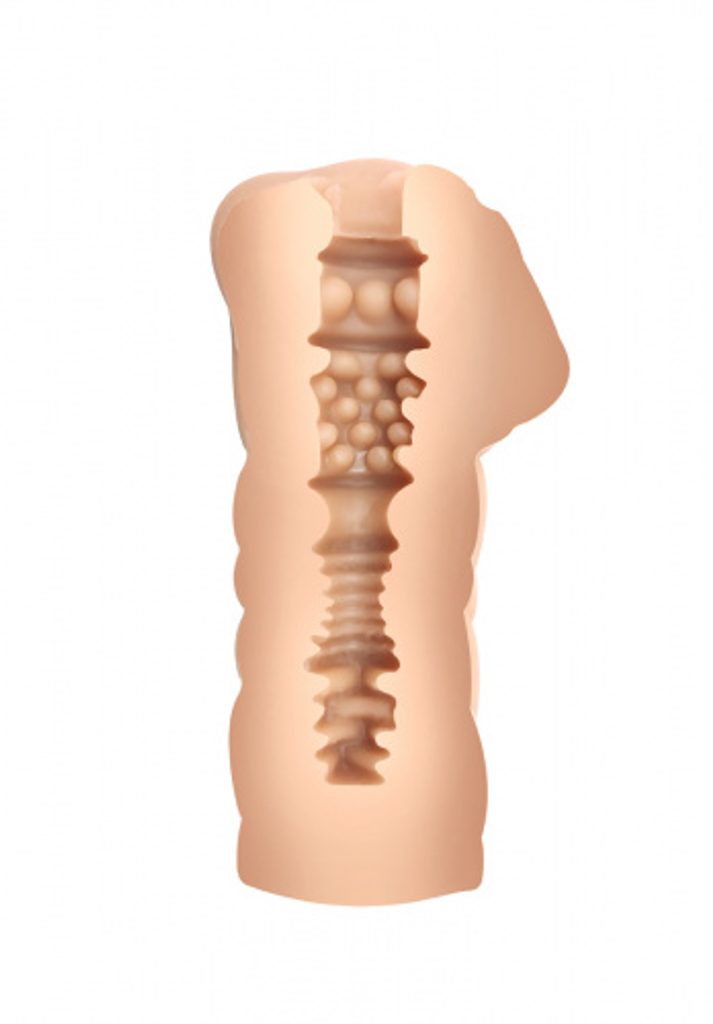 The surface of this material is soft and velvety and feels like a real person's touch. At the same time, the masturbator is very flexible and expands well, so it is suitable for any size, and the internal relief pleasantly stimulates the entire surface of the penis.