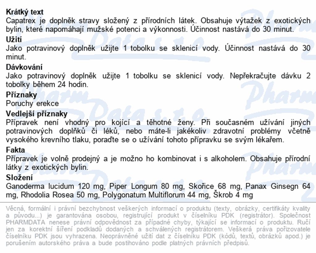 A proven product designed to support sexual function in men. Treat yourself to increased sexual activity caused by the patented combination Capatrex™ The product is notified to the Ministry of Health of the Czech Republic in the relevant register IS RoHy under No. OVZ-35.1-19.11.2010-1876. Capatrex™ is the world leader in natural supplements for increasing sexual performance in men. It is a medical discovery on a natural basis without side effects intended for men who want to achieve long, hard and lasting erections.