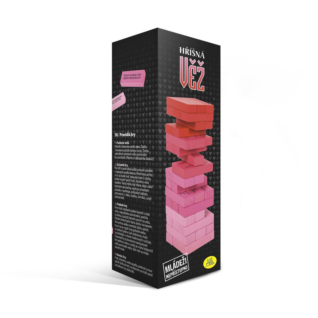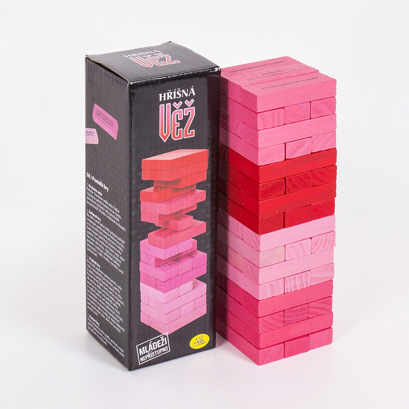 Build a sinful floor of jenga stones. There is a task on each wooden stone that you will have to complete or put away one piece of clothing. Whoever falls for the jenga ends the game and the loser will have to perform a special task, which you agree on before the start of the game. It is allowed to manipulate the stones with only one hand and it is always necessary to complete the whole floor of the jenga before a new one can be built. You can also play the game in a group of several people and choose any of them to complete the task with your partner.