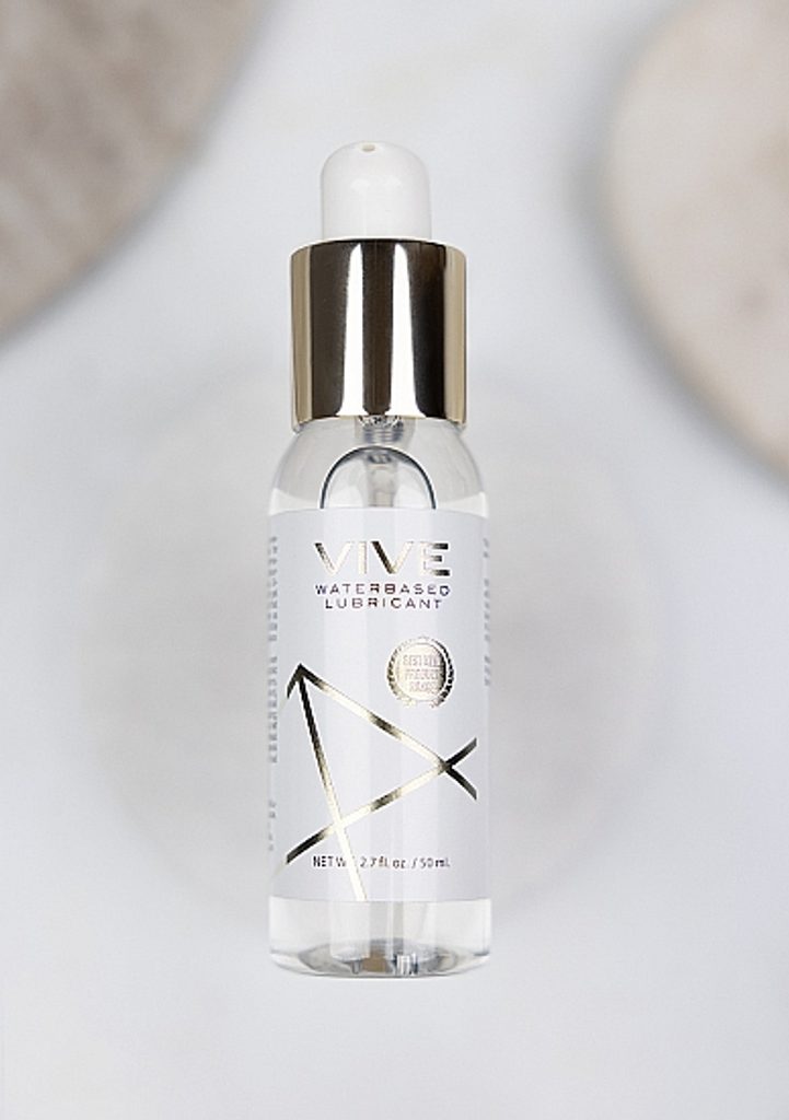 Water-based lubricant from VIVE. Suitable for use with latex condoms. Dermatologically tested, fat-free, colourless, odorless and tasteless.